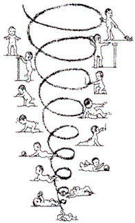 Der Raumweg von der Bauch-, Rückenlage zum Stehen verläuft